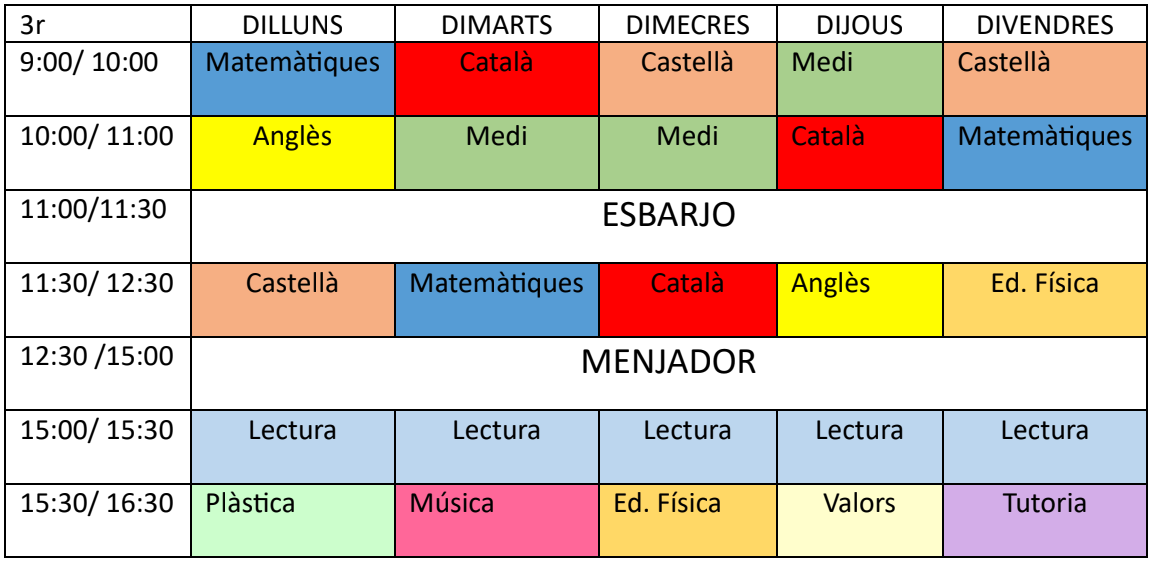 Aquests són els horaris de cicle mitjà del curs 2022/2023