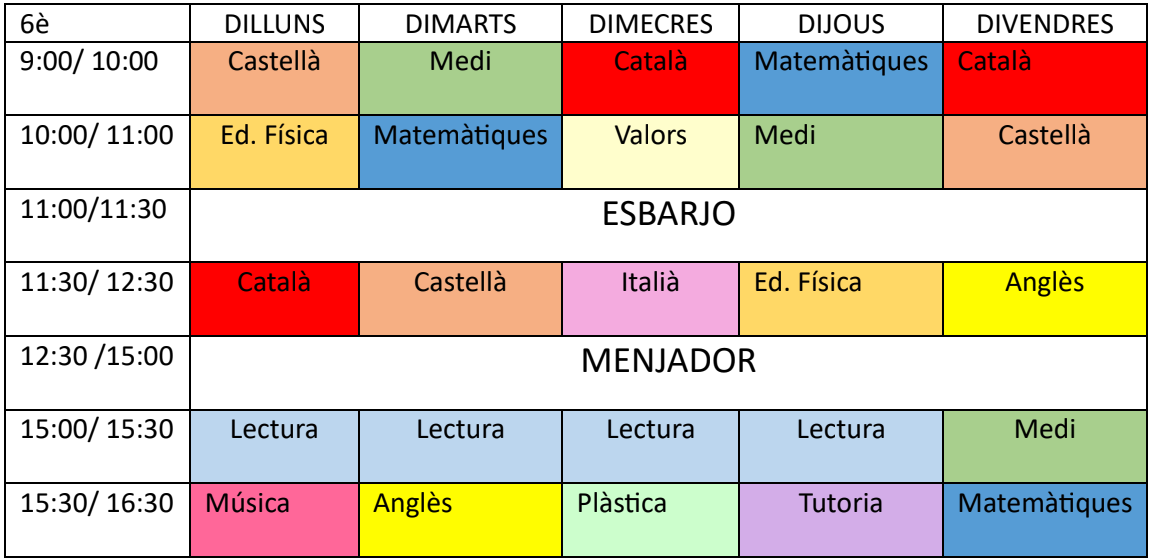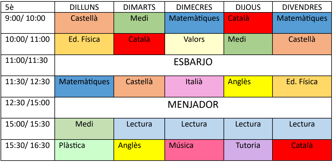 Aquests són els horaris de cicle superior del curs 2022/2023