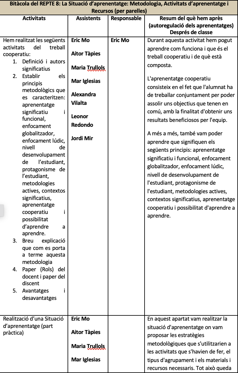 Aquest és el repte 8. En aquest repte hem treballat les orientacions metodològiques i hem redactat l'apartat de desenvolupament de totes les nostres Unitats Didàctiques. Hem establert la teoria referent als mètodes didàctics, les tècniques i les estratègies d'aprenentatge amb les seves característiques corresponents. A més a més ens hem centrat a redactar les activitats d'aprenentatge, els recursos, la metodologia emprada i l'organització de la classe.